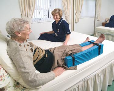 Die Invacare Propad Beinschiene wurde in Zusammenarbeit mit Krankenhausärzten entwickelt. Die Fersen werden am unteren Ende über dem Rand der Beinschiene positioniert. Diese erhöhte Position entlastet die besonders empfindlichen Fersen.